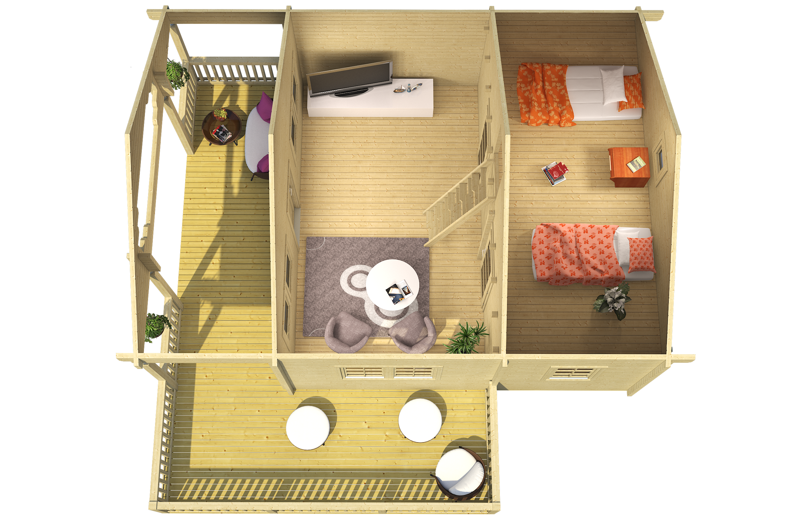 Sichere Eckverzahnungen sorgen für einen guten Halt ebenso wie die durchgehenden Gewindestangen. Das Blockhaus Mantova mit Schlafboden verfügt über eine großzügige Nutzfläche von 55,3 Quadratmetern. Drei Innenräume machen dieses wunderbare Blockhaus aus ebenso wie ein vorhandener Schlafboden. Der optional erhältliche Fußboden besteht aus starken Nut- und Federdielen, mit funktionalen Sockelleisten sowie kesseldruckimprägnierten Fundamenthölzern.