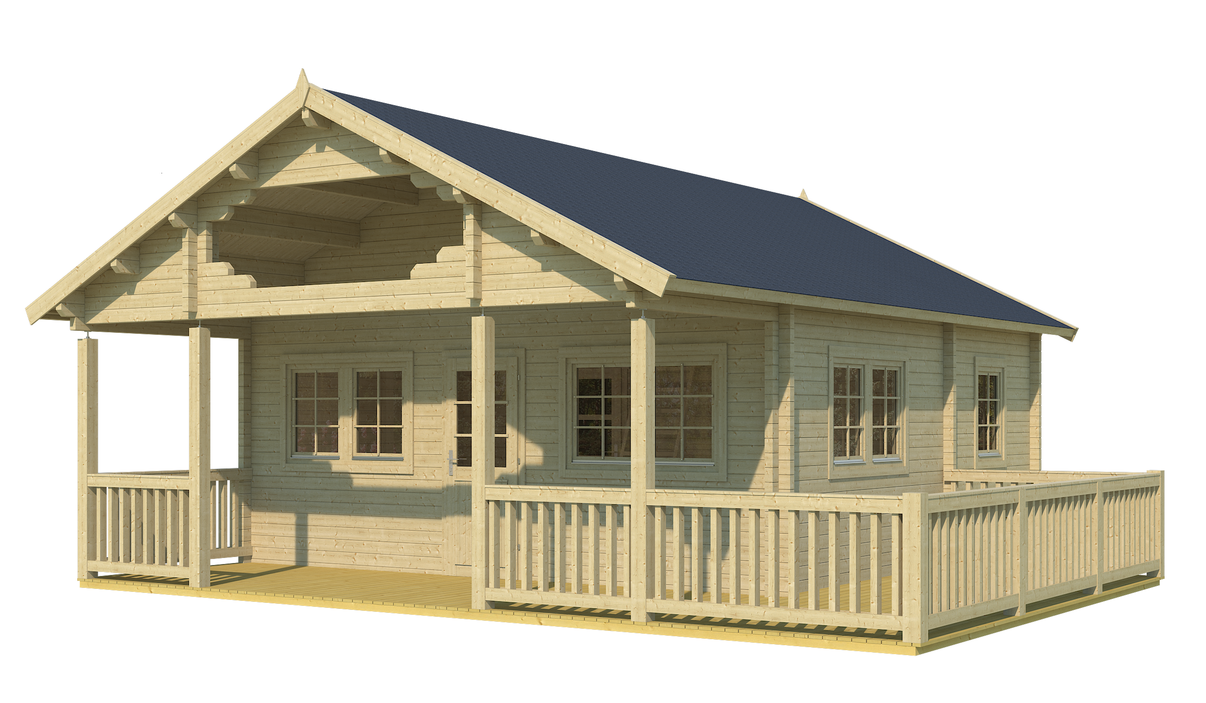 - Massive 70 mm Blockbohlen ausgestattet mit doppelter Nut und Feder