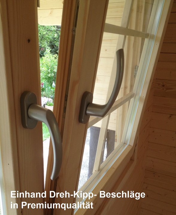 Das Blockhaus Mantova mit Schlafboden ist ein echter Hingucker und wir Ihnen viel Vergnügen bereiten. Dieses Ferienhaus von Tene besitzt natürlich auch eine praktische Leimholztür, die mit Isolierverglasung versehen ist. Hochwertige Dichtungen, eine Edelstahlschwelle und eine Alu-Drückergarnitur mit Zylinderschloß gehören zum Umfang dazu.