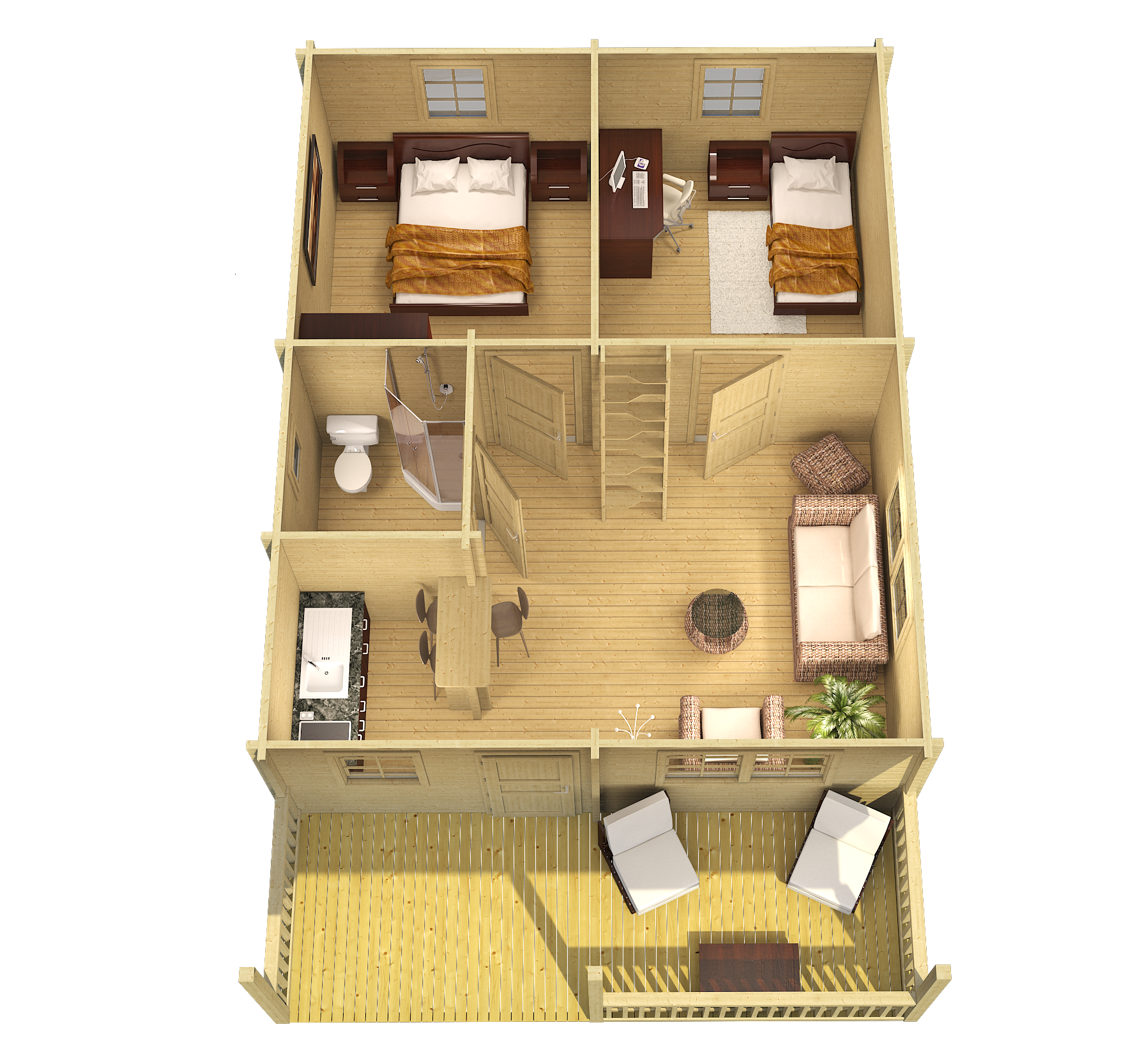 Die Lieferung vom Ferienhaus Toledo 70-D mit Iso erfolgt als unbehandelter Bausatz inklusive Schlafboden mit Treppenaufgang, überdachte Terrasse, Befestigungsmaterial, Fundamentplan und Montageanleitung. Fenster und Türmaße = Einbaumaß B x H. Im Lieferumfang von dem Wochenendhaus ist keine Dachpappe, Einrichtung oder Dekoration enthalten. |
