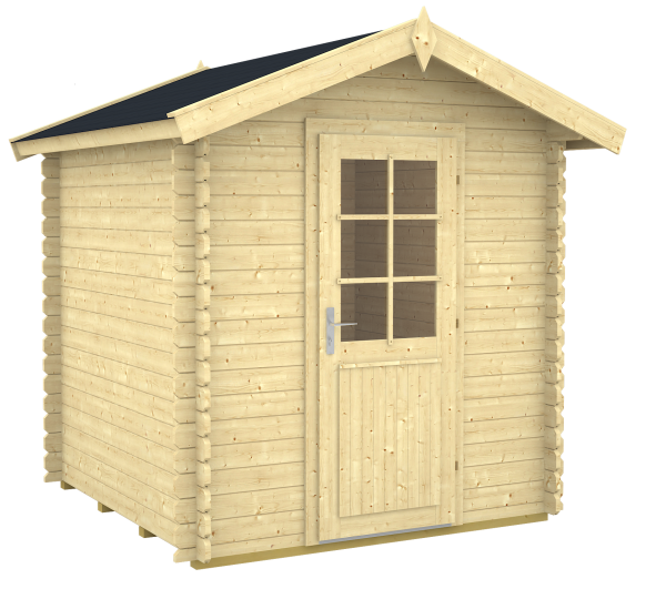 Wir liefern Ihnen das Gartenhaus Gerätehaus Tina 28-A in der Größe 2,20 x 2,20 m als Bausatz inklusive Befestigungsmaterial, Plan vom Fundament und detaillierter Montageanleitung. Im Lieferumfang befinden sich ebenfalls die Tür aus Leimholz mit Echtglas, die Türbeschläge sowie das Türschloss mit Profilzylinder und Edelstahlschwelle