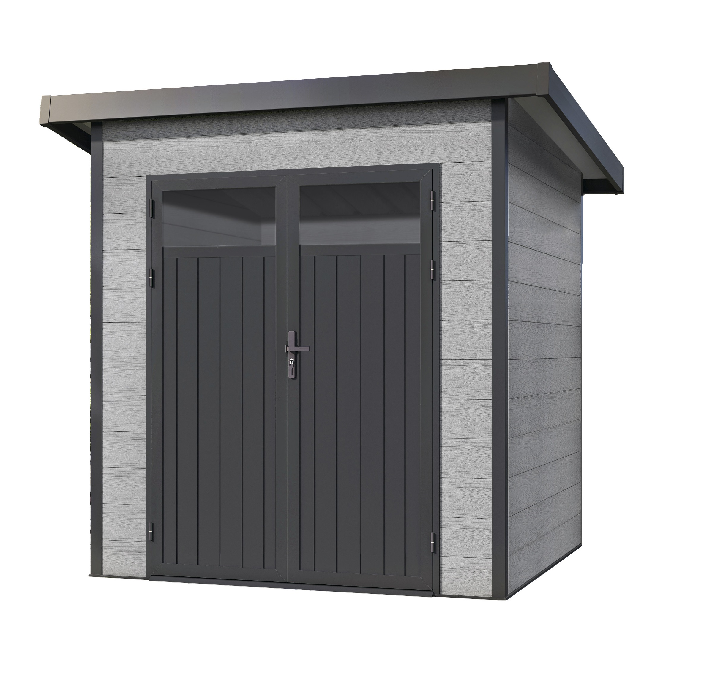 WPC-Pultdach Gartenhaus Vitale 2020 19 in hellgrau von Wolff Finnhaus.