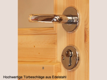 Tür aus Leimholz mit Isolierverglasung inklusive Edelstahlschwelle, Beschlägen, Edelstahl-Drückergarnitur und Schloss mit Profilzylinder