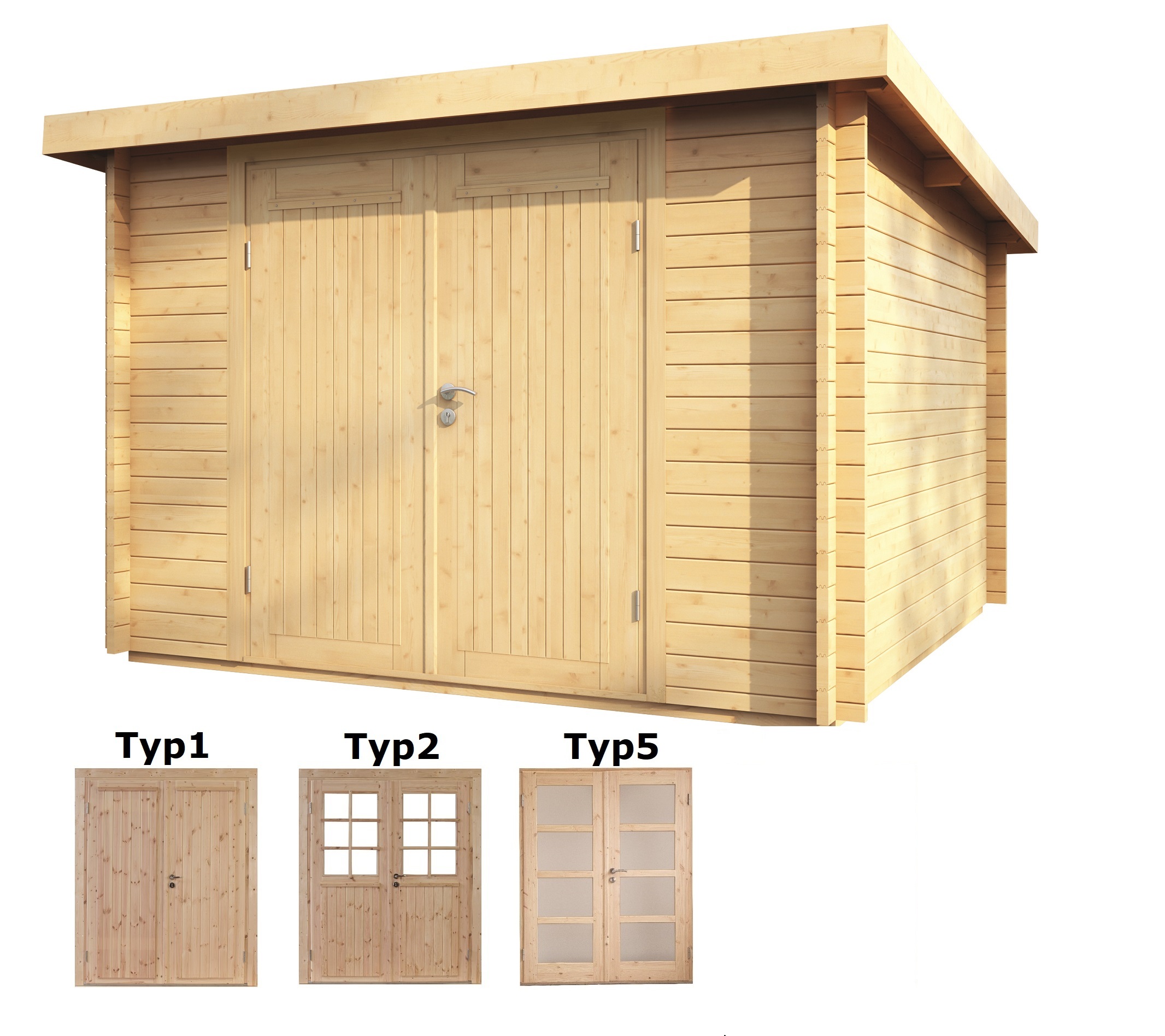 Pultdach Gartenhaus  Pulti 34-BDoppeltür als unbehandelter Bausatz von Wolff Finnhaus.