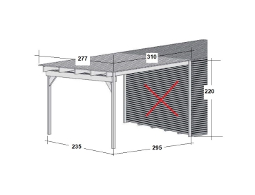 Das Seitendach kann wahlweise rechts oder links angebaut werden und lässt sich individuell kürzen und passt sich somit fast jedem Gartenhaus an. Bodenverankerungen sind in dem Bausatz nicht enthalten. |