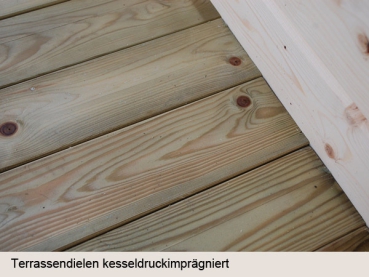 Terrasse mit kesseldruckimprägniertem Fußbdoden und Vordach